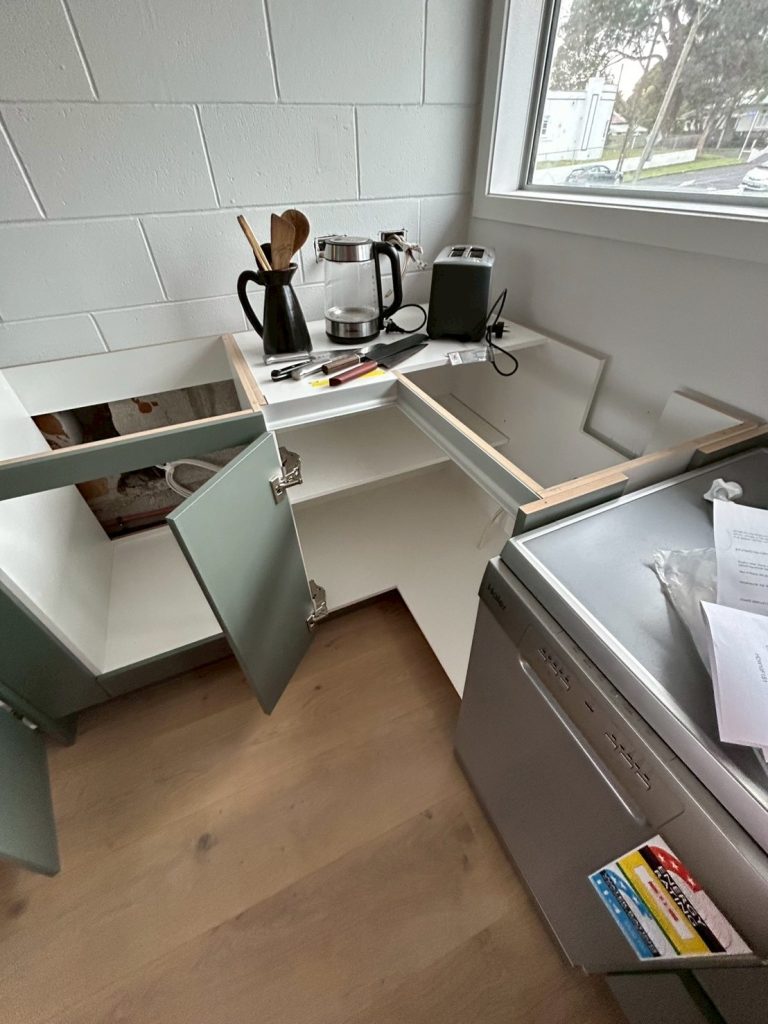 So how is this project coming along? BoxMakers have recently finished the cabinetry fit-out and have prepared the benchtop template. Our next step is installing the sleek stainless-steel benchtop. We are excited to see this verdant kitchen to completion and can’t wait to see the finished job!