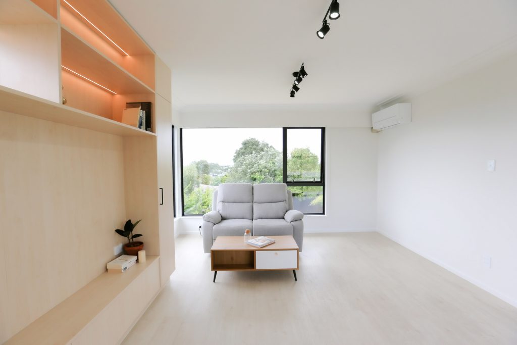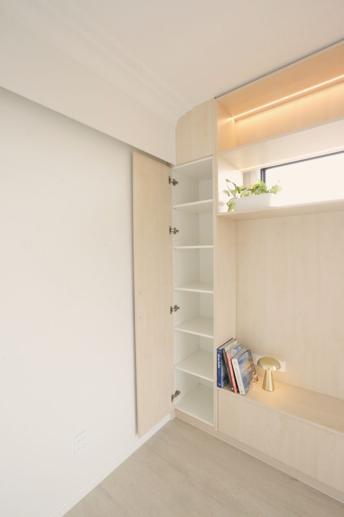 Coming with the original home, the owner’s living space inherited an old fireplace. As they wished to opt for indoor heating, this fixture would have served as nothing more than a decorative relic. In place of it, BoxMakers were called upon to deliver a floor to ceiling TV cabinet, with a broad enough space to accommodate TVs up to 75”.