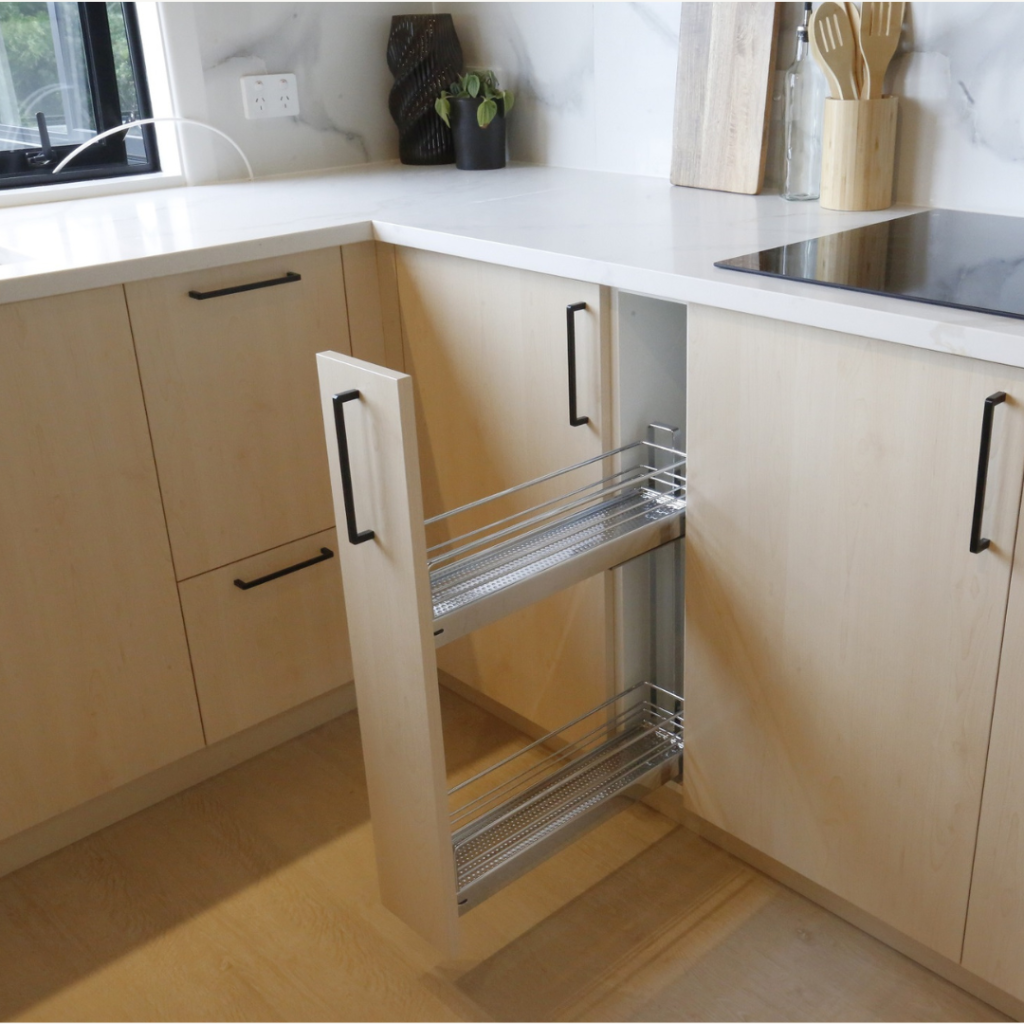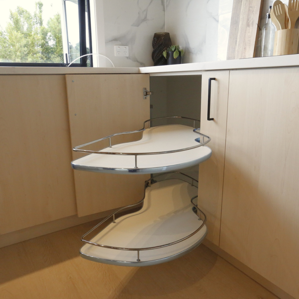 Corner cabinets are another frequent issue. Corners often become dead space or are fitted with outdated, inefficient mechanisms that do not fully utilise the area. Thoughtful corner solutions like pull-our storage systems or lazy Susan, can dramatically improve storage capacity and accessibility.