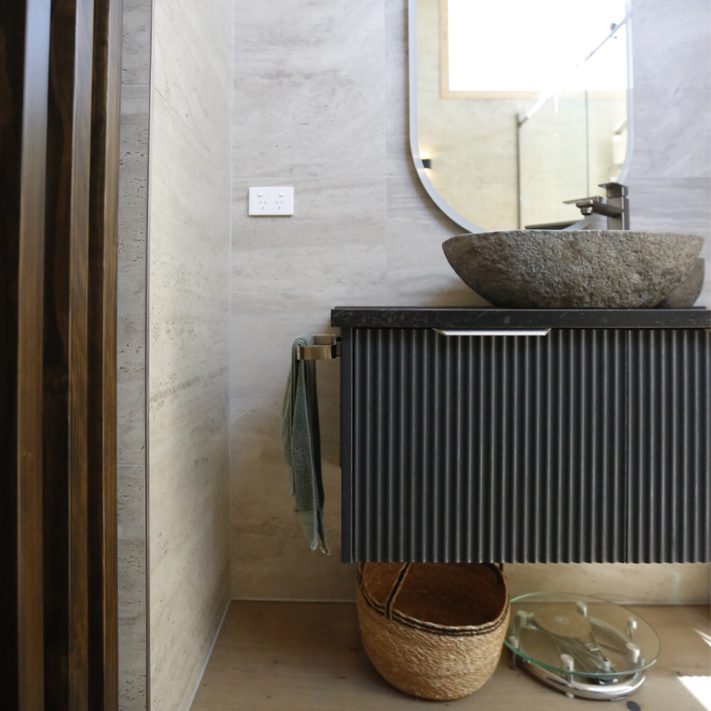 Busy splashbacks are another frequent regret. Highly patterned or brightly coloured tiles may initially feel expressive, but they can overwhelm the space and compete with the cabinetry. A more restrained splashback, such as a timeless stone slab or subtle tile, often allows the cabinetry and architectural details to stand out while still adding depth and texture.