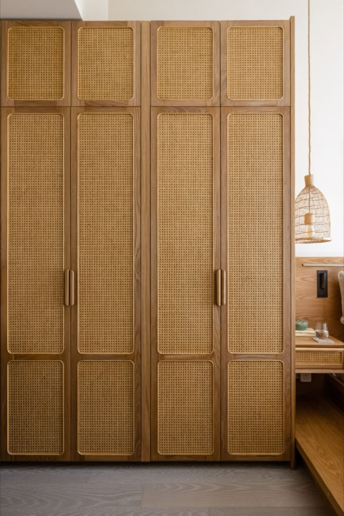 Japandi colours range from soft whites to warm beige to deeper chestnut tones. Indoor greenery is often used to add natural contrast. You might recognise shoji — Japanese sliding doors made of wooden grids and paper. These light, elegant panels fit perfectly in Japandi spaces as room dividers or decorative features. Vertical slatted walls are also common, reminding us of both traditional Japanese joinery and Scandinavian timber cladding. This mix creates a look that is both modern and natural. Add Scandinavia’s textiles, gentle curves, and cosy atmosphere, and you have a truly balanced environment.
