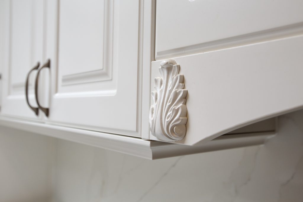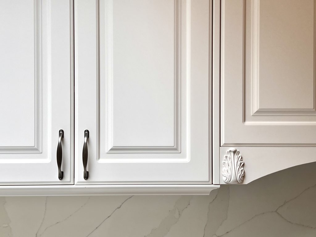 Central to the theme of the new kitchen was traditionalism, in line with the design language of the house as a whole. Staying true to the original cabinet faces, we chose new panels that maintained the raised profiles. Dezignatek’s Marseilles line was selected, in Alabaster Satin – a warm white that can take on different tones depending on the light. This extended to all of the cabinetry from the drawers to the overhead units, and even the tall pantry cabinets.